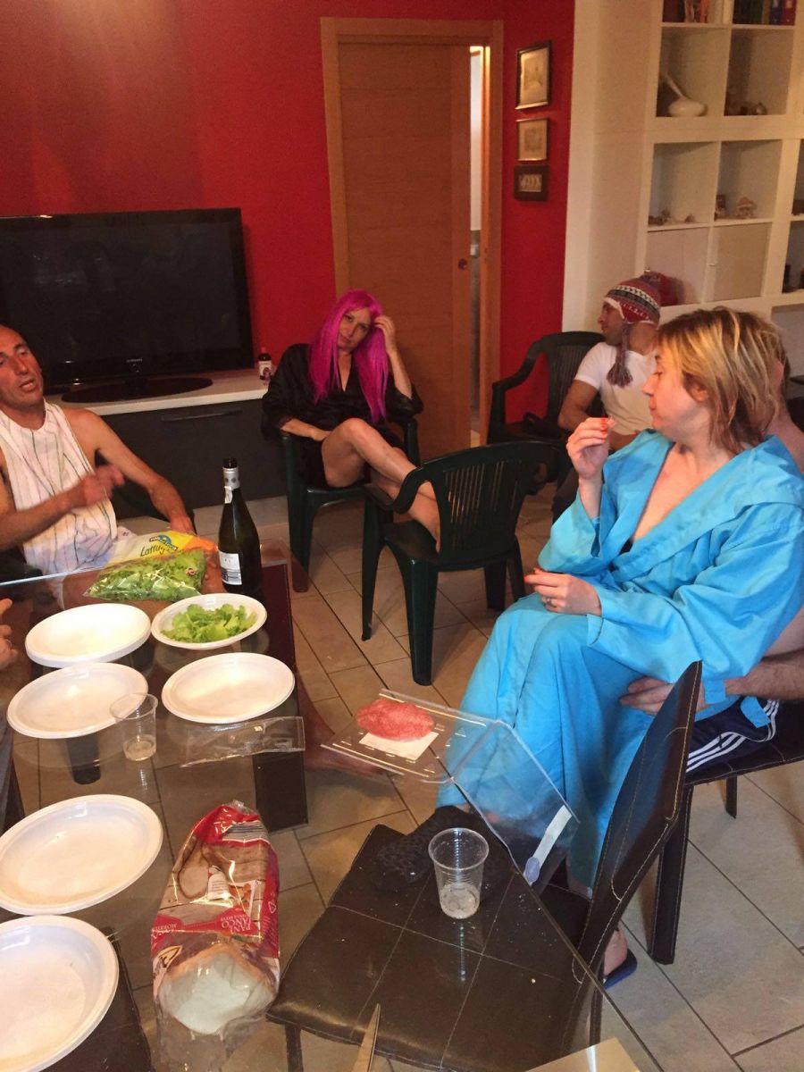 Martedì andremo a trovarla con le telecamere della centoxcento, e pensate che bravi che siamo, per non farle saltare nemmeno un giorno di palestra gireremo con lei a casa del mio amico Totonno o' Palummar', personal trainer abusivo che ci lascerà la casa, completa di attrezzi, causa breve pena detentiva al carcere della Dozza..